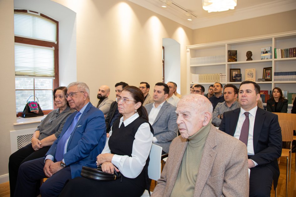 Akademik mövzu ətrafında ətraflı çıxış edərək Azərbaycan dilinin tarixi inkişaf yolu, ideoloji mahiyyəti və dövlətçilik baxımından əhəmiyyəti barədə fikirlərini qaliblərlə bölüşüb. Görüşün davamında qaliblərin ünvanladıqları suallar cavablandırılıb, müzakirələr interaktiv və maraqlı diskussiya şəklində davam edib.