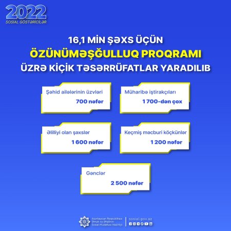 Son bir ildə 16,1 min şəxs üçün özünüməşğulluq proqramı üzrə kiçik təsərrüfatlar yaradılıb