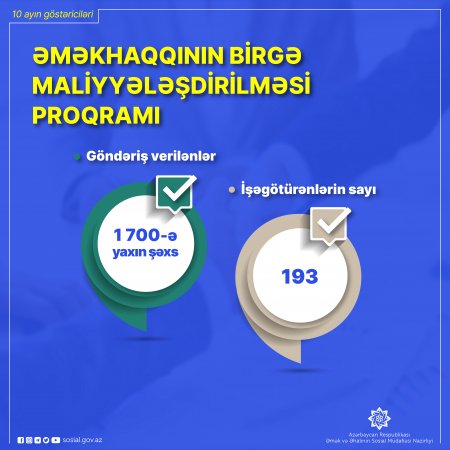 Əməkhaqqının birgə maliyyələşdirilməsi proqramı üzrə bu il 1700-ə yaxın şəxsə iş yerlərinə göndəriş verilib
